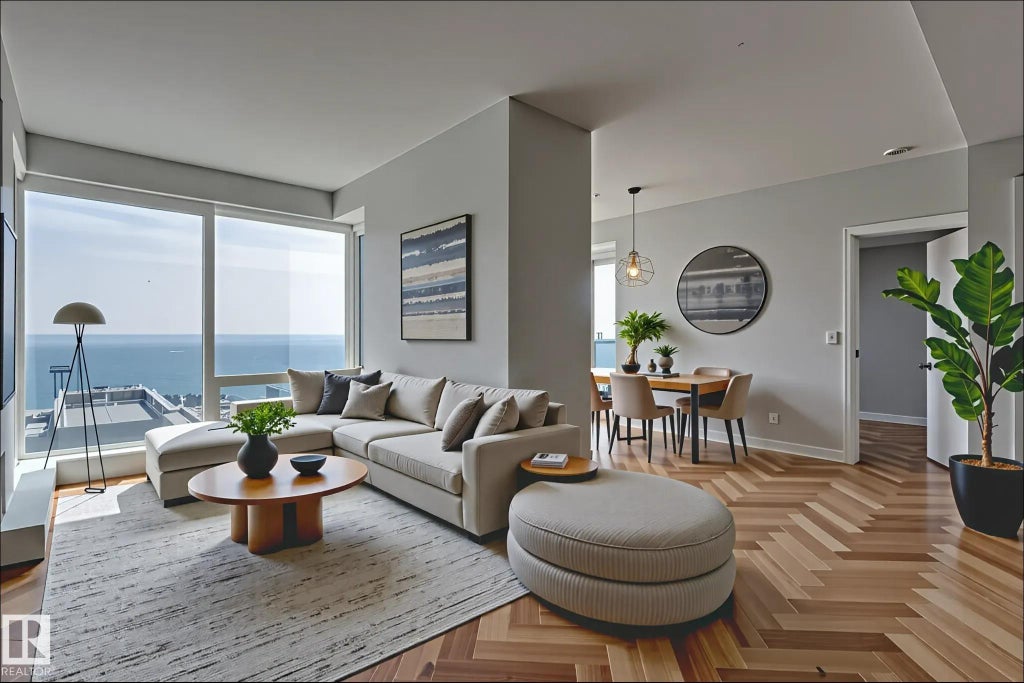What an opportunity at a Spacious 2 Bedroom + Den, with River Views, located within the heart of ICE District! Both bedrooms accommodate a queen-sized bed, and the functional den can be utilized as an office, walk-in pantry, or in-suite storage. In-suite upgrades include timeless walnut herringbone floors, waterfall granite counter tops, and an upgraded gas range. Secure underground parking is available at an additional monthly cost. Enjoy the many advantages of the exclusive JW Marriott Tower, which include access to an indoor pool, steam room, and ARCHETYPE Fitness Facility. Additional services include 24/7 concierge/security presence, private resident lounge with seasonal functions, outdoor dog-run (located on secure floor), and numerous dining choices at your doorstep! ICE District's central location encourages a walk-indoors experience with pedway access to Rogers Place, the financial core, groceries, public transit, + so much more.